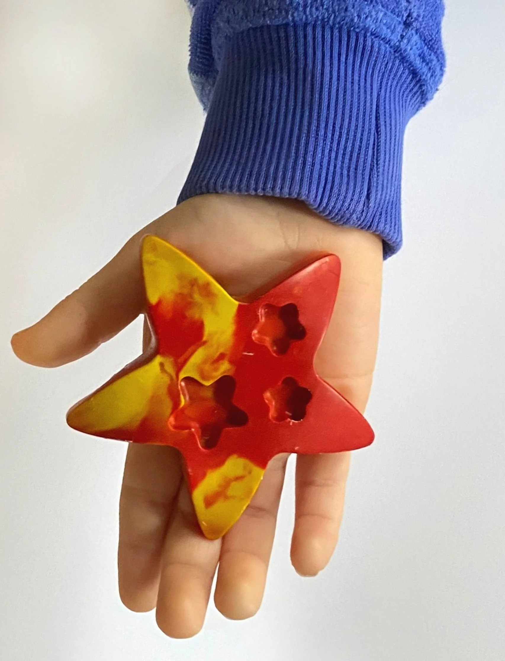 Crayons in good condition will be distributed as is to organizations in need of art supplies. Crayons in poor condition will either be melted down and recycled into fun shapes and distributed… …or melted down and transformed into recycled artwork.